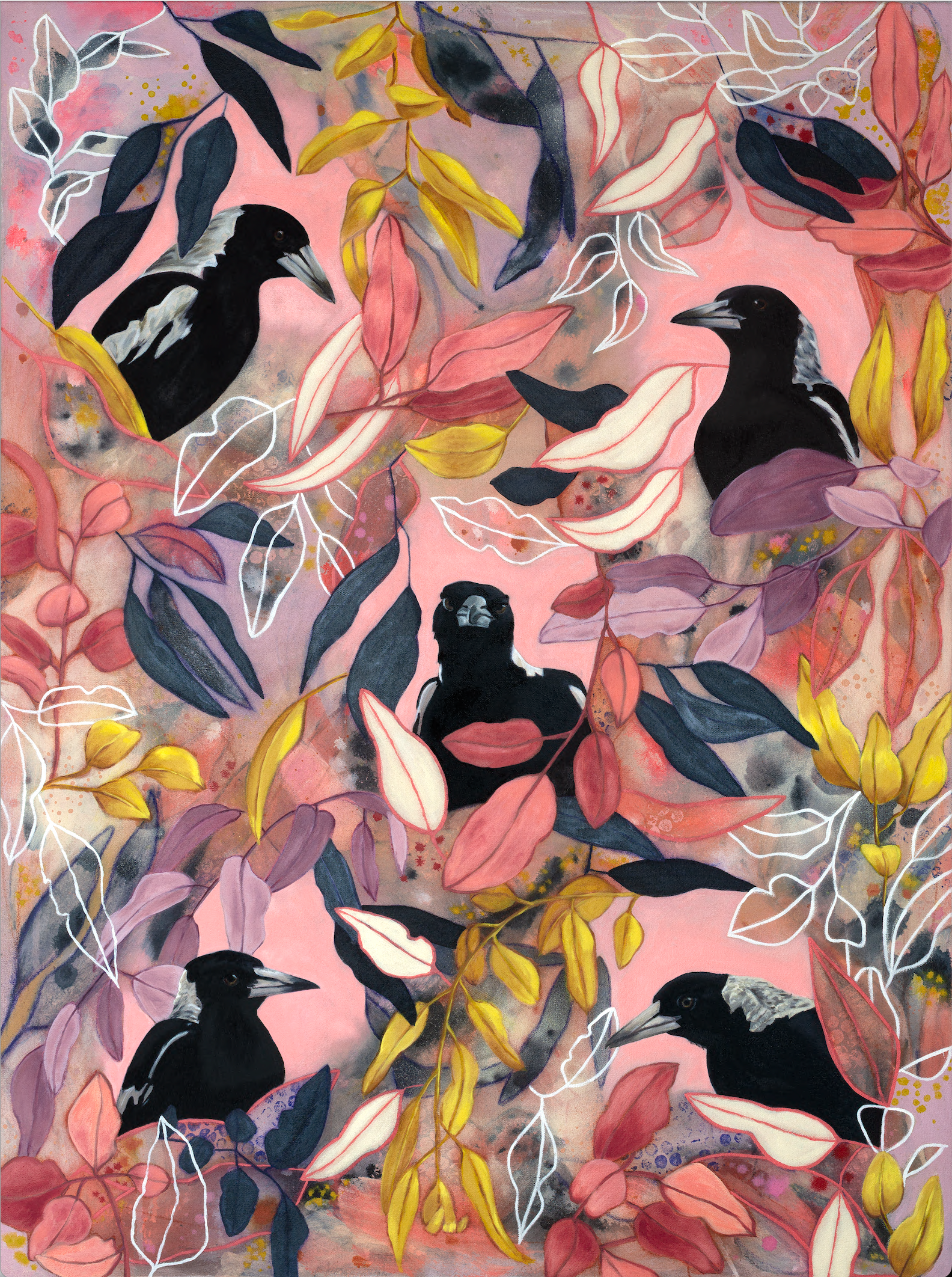 In the midst of life’s busyness, she seeks moments of exhalation and clarity—often found in the liminal spaces of daily existence. Slow, quiet walks; magpies warbling; sky gazing; and watching birds dance in the early mornings and evenings provide her with these moments of calm and focus.